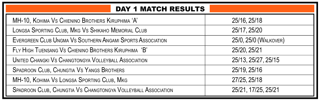 In the inaugural match, defending champions MH-10 Kohima faced a formidable challenge from Chienino Brothers Kiruphema ‘A’, third-place winner of 2023. The reigning champions showcased their dominance once again, outclassing their opponents in straight sets, sealing the best-of-three encounter 25–16, 25–18.