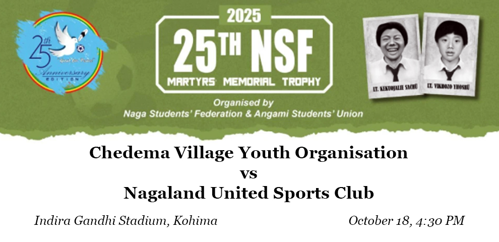 The stage is set for a grand finale as Chedema Village Youth Organisation (CVYO) and Nagaland United Sports Club (NUSC) lock horns in the final match of the 25th NSF Martyrs’ Memorial Trophy on October 18 (Saturday) at 4:30 PM at the Indira Gandhi Stadium, Kohima.
