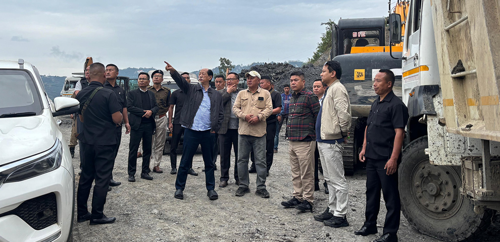 During the inspection, Executive Engineer of PWD (National Highways), Bendang, briefed the visiting officials on the progress of the work. He informed that the stream responsible for the recent landslide, along with two adjoining streams, had been diverted to another valley. The streams are being channelled into a single reinforced concrete (RCC) box drainage system designed to ensure smoother water flow and enhance slope stability.