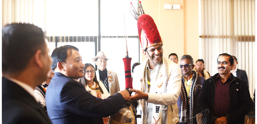 The Yimkhiung Cultural Troupe showcased Sang Lolong Pe (traditional go-cart). This game, usually played by children and youths, fosters connection, friendship, and both physical and mental fitness. The Kuki troupe showcased Vakol Lam, inspired by the synchronized flight of the Vakol bird.