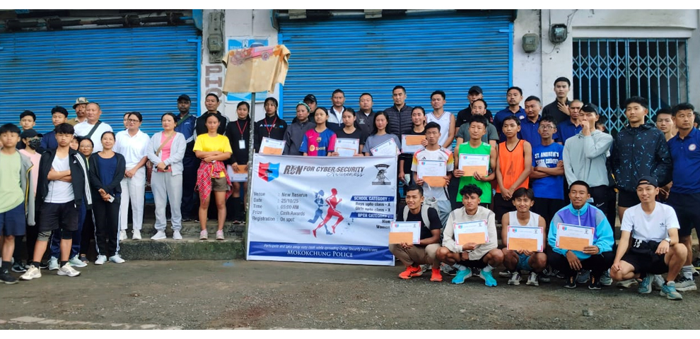 Mokokchung Police organized a mini-marathon on Saturday under the theme “Run for Cyber Security Awareness.” The event was conducted with the objective of raising awareness students and citizens about the importance of cyber security, online safety, and preventive measures against cyber-related crimes.