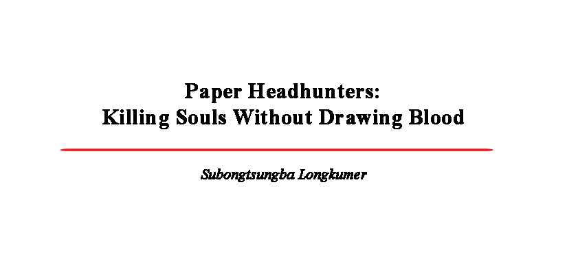 Today, we Nagas still hunt heads. The battlefield has shifted from the forests to courtrooms, village councils, church committees, and social media. Our weapons are no longer sharpened blades but sharpened words—pens, papers, whispers in dark corners, the click of a keyboard. We no longer sever flesh, but we slice through dignity. We do not raise machetes, yet we wield our influence, our connections, and our collective silence to execute reputations, careers, and souls.