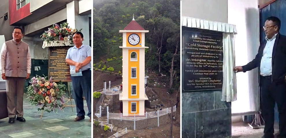 All three projects were initiated by NLA Speaker and Mokokchung DPDB Chairman Sharingain Longkumer under the Local Area Development Programme (LADP) 2024–25. The inaugural plaque of the Rs 50-lakh clock tower, built as an LADP Iconic Project, was unveiled by Sentirenla Jamir, wife of the Speaker, while the cold storage and banana fibre production units, funded under the LADP common pool, were inaugurated by Advisor Imkongmar and Minister Metsübo Jamir, respectively.
