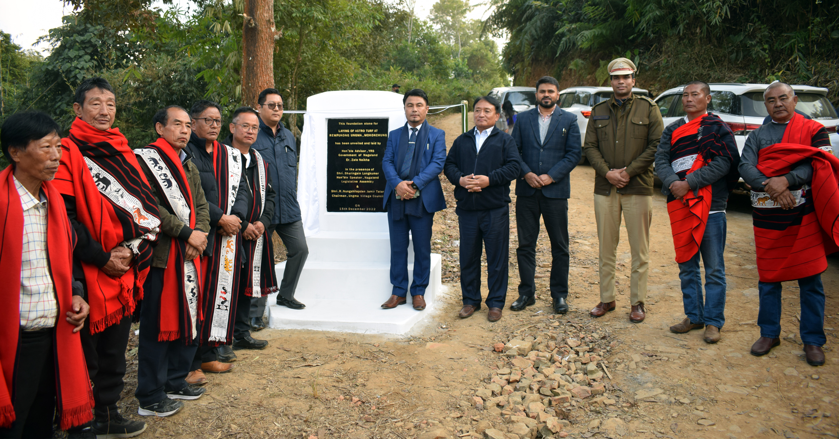 Mokokchung, December 15 (MTNews): Er. Zale Neikha, Advisor, Youth Resource & Sports, govt. of Nagaland unveiled the foundation stone for laying of Astro Turf at Rempukong, Ungma, Mokokchung in the presence of Sharingain Longkumer, Speaker, Nagaland Legislative Assembly; Mestubo Jamir, Minister, Rural Development and Shashank Pratap Singh, IAS, Deputy Commissioner, Mokokchung, and President, Mokokchung District Sports Council.